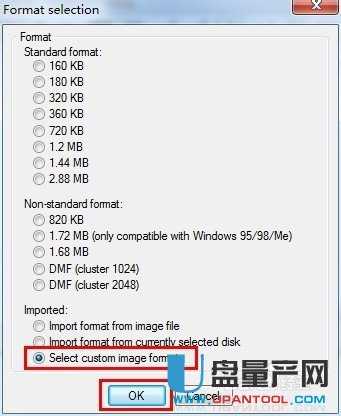 安装完成后,双击“winima80”程序运行,在打开的程序主界面中,点击“File”→“New”项,然后在打开的“Format Selection”窗口中选择“Select Custom Image Format”(选择自定义格式)项并点击“确定”按钮。