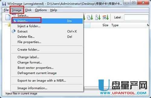 接着点击“Image”→“Inject”项,不断的向其中添加文件,直到填满为止。最后点击“保存”按钮。